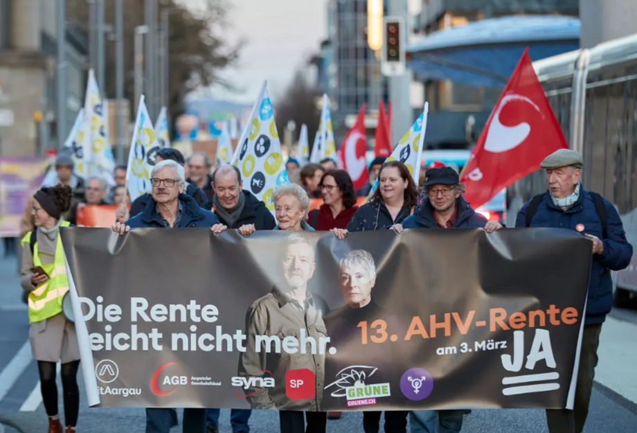 Der Abstimmungstag am 3. März rückt näher. In Aarau haben am 13. Februar rund hundert Menschen mit einem Abendspaziergang vom Bahnhof Aarau zum Kultur- und Kongresshaus ein Zeichen gesetzt (hier gehts zum Artikel in der Aargauer Zeitung). Für Renten, die wieder zum Leben reichen müssen – insbesondere auch für Frauen, und für eine starke AHV überhaupt. Denn die AHV ist die einzige Altersvorsorgeeinrichtung, die auch für die Normal- und Geringverdienenden eine Existenz im Alter ermöglicht. 92% der Versicherten erhalten mehr Geld aus der AHV zurück, als sie während ihrem Erwerbsleben eingezahlt haben. Die „Giesskanne“, wie sie von den Gegnern genannt wird, funktioniert genau so, wie sie funktionieren soll.